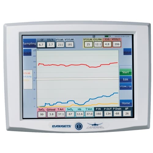 La monitorizaci贸n de los par谩metros hemodin谩micos y metab贸licos de los pacientes (gasto card铆aco, VO?, VO?) es fundamental para lograr un equilibrio entre las necesidades metab贸licas y la funci贸n del 贸rgano artificial. La relaci贸n entre el gasto card铆aco (GC) y el flujo sangu铆neo extracorp贸reo (FS) es fundamental para comprender la recirculaci贸n en el pulm贸n de membrana y las dificultades para obtener un flujo sangu铆neo satisfactorio.